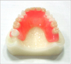 金属の止め具のない入れ歯(義歯)のため、入れ歯(義歯)と目立たなく、審美的(見た目)に非常に優れており、自然で美しい入れ歯(義歯)です。