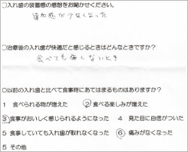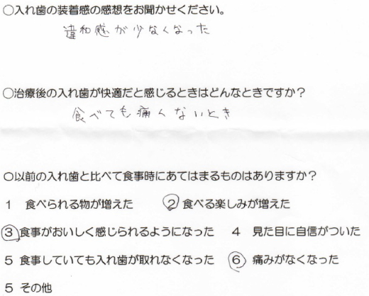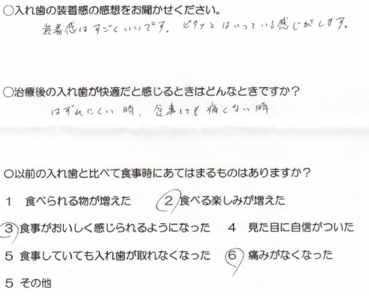 また、入れ歯が外れたり、ずれたりすることが少なくなることや、残っている歯へ負担を減らすことができます。食べ物が入れ歯に挟まる事が少なくなります。